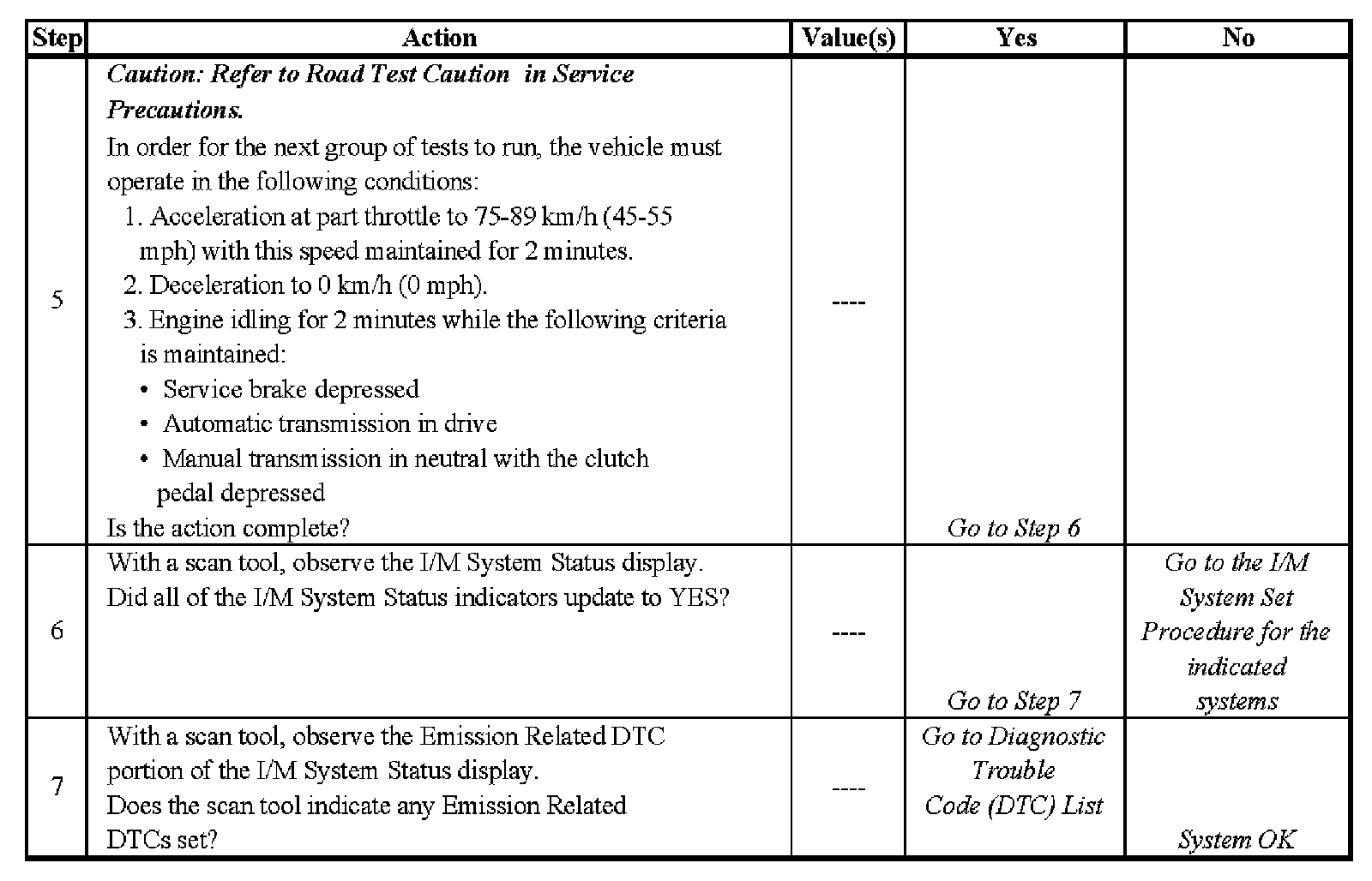 Inspection/Maintenance (I/M) Complete System Set Procedure - Steps 5-7: