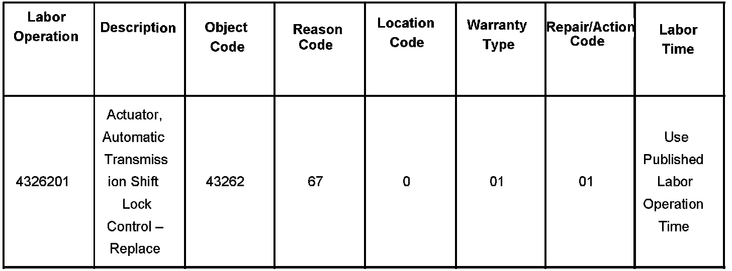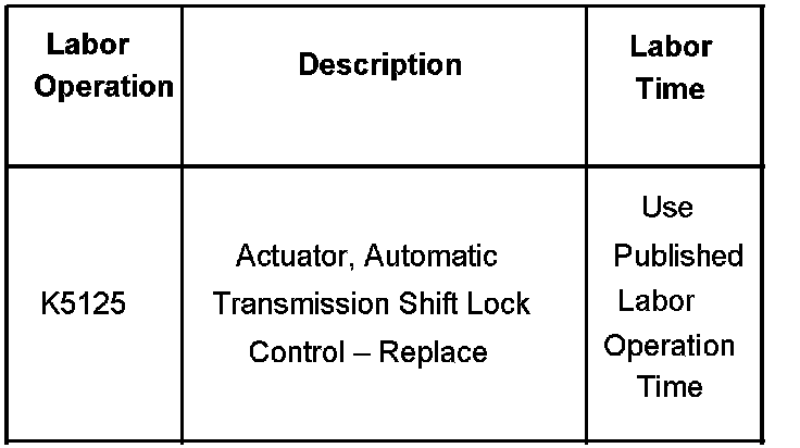 The automatic transmission shift lock control actuator is now available for service as a separate part. The actuator was formerly available only as part of the entire shifter assembly. DO NOT replace the shifter assembly if the shift lock control actuator requires replacement. Please refer to the Automatic Transmission Shift Lock Control Actuator Replacement procedure in the Automatic Transmission sub-section of the Service Information.