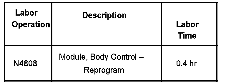 Reprogram the Body Control Module using the normal SPS reprogramming procedure (TIS version 1.0 released January 2003, or newer).