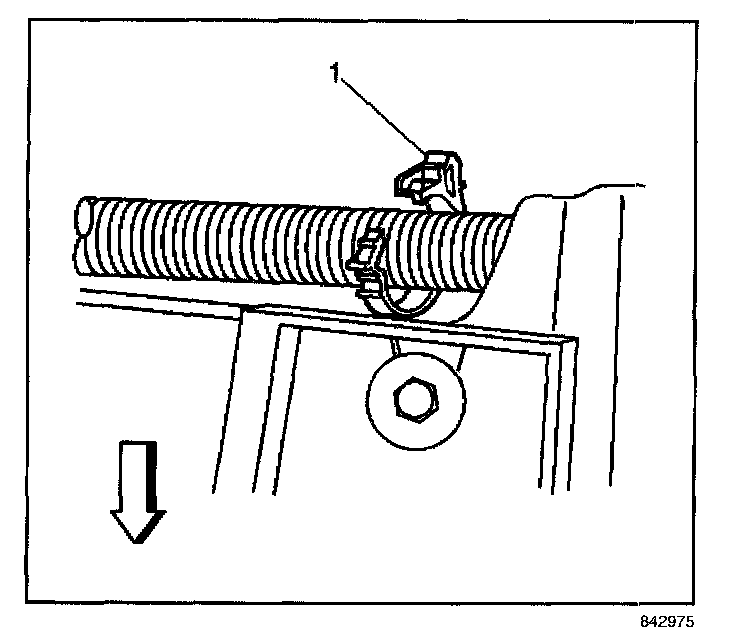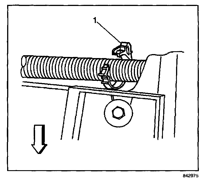 7. Position the headlamp wire harness (1) to the retaining clip.