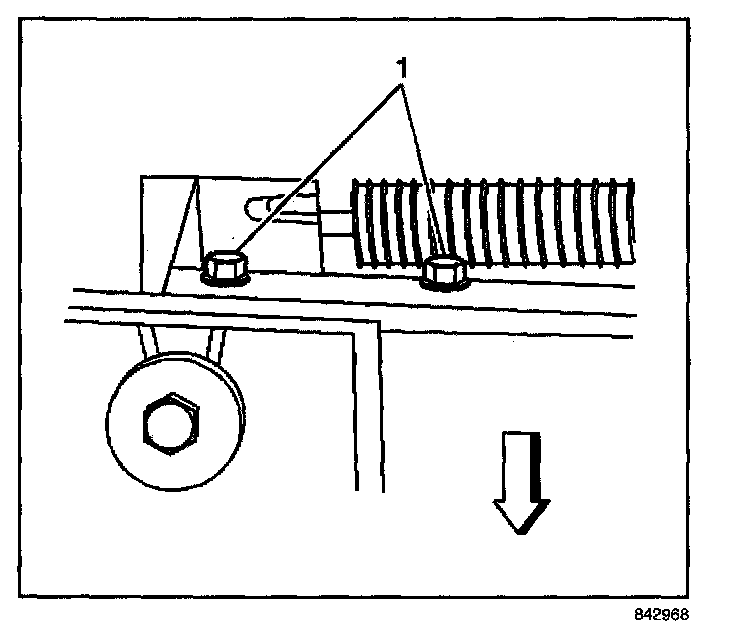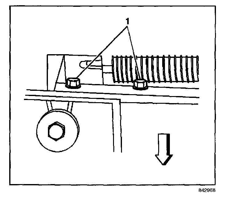 5. Loosen the bolts (1) retaining the discriminating sensor to the frame.