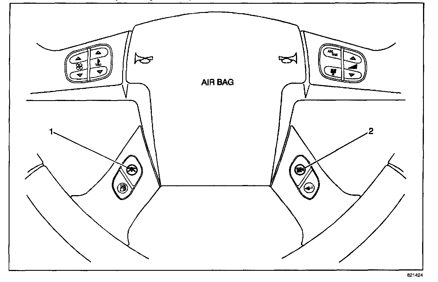 1. Press and hold the personalization button (2) and the trip information button (1) at the same time. The DIC will begin scrolling through the languages. Each language will be shown in that particular language (English will be in English, French will be in French, etc.).