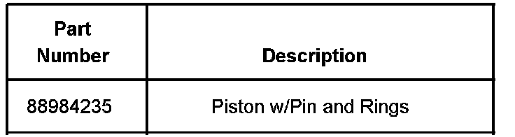 Should any of the above vehicles require a piston for any reason, the following replacement part number should be used. 88984235 - Standard size piston with piston pin and rings.