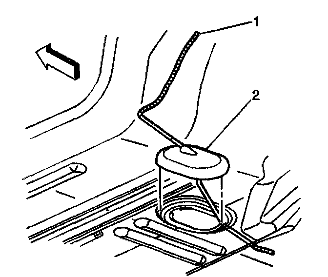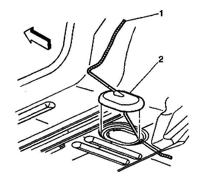 1. Push the cable down through the floor panel and install the grommet (2).
