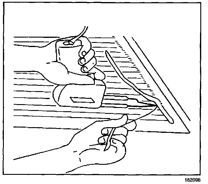 ^ Use pliers to hold the rear defogger bus bar lead wire, antenna or defogger terminal.