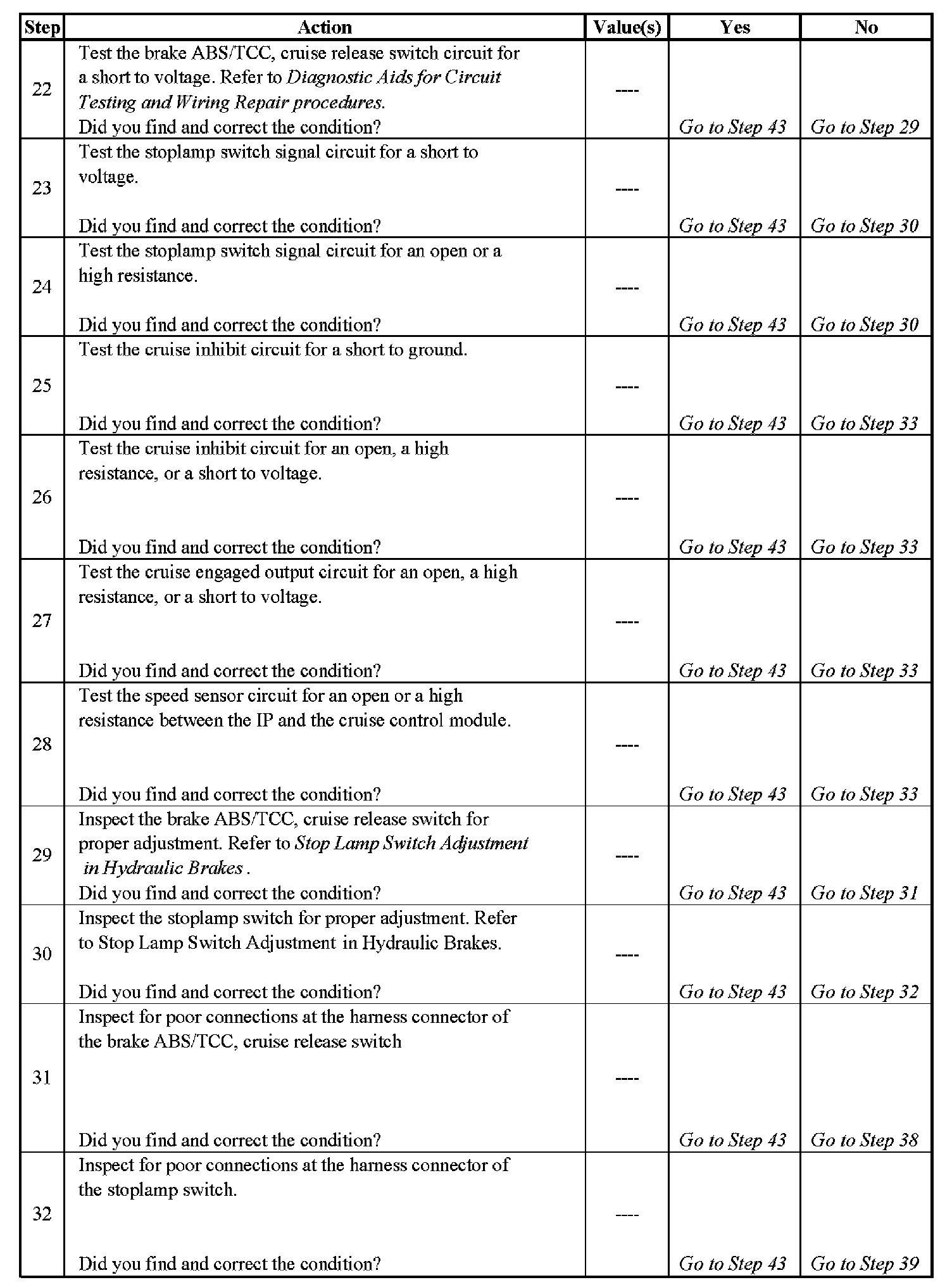 Cruise Control - Inoperative/Malfunctioning