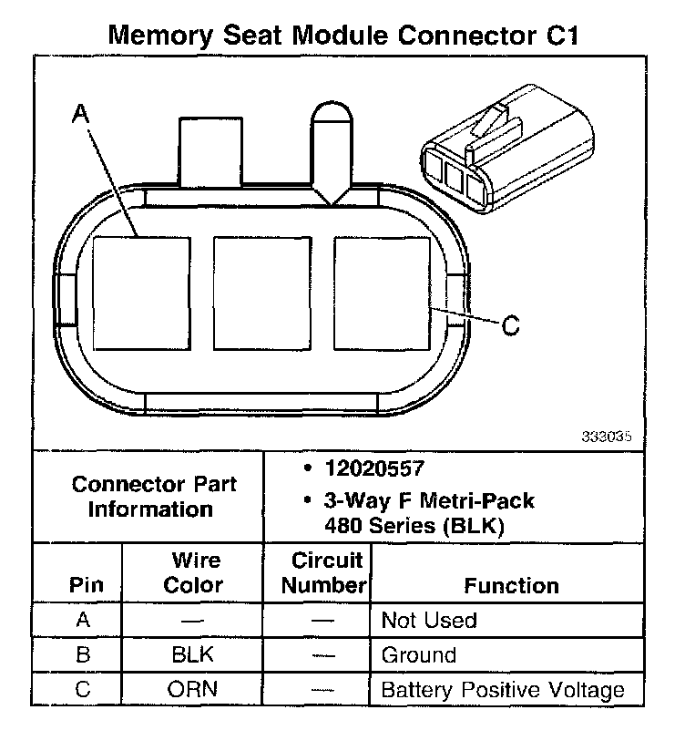Memory Seat Module Connector C3: