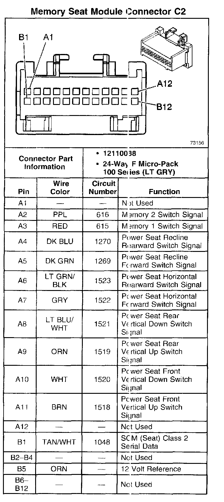 Memory Seat Module Connector C2: