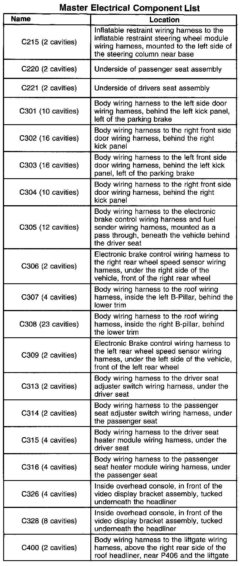 Master Connector List