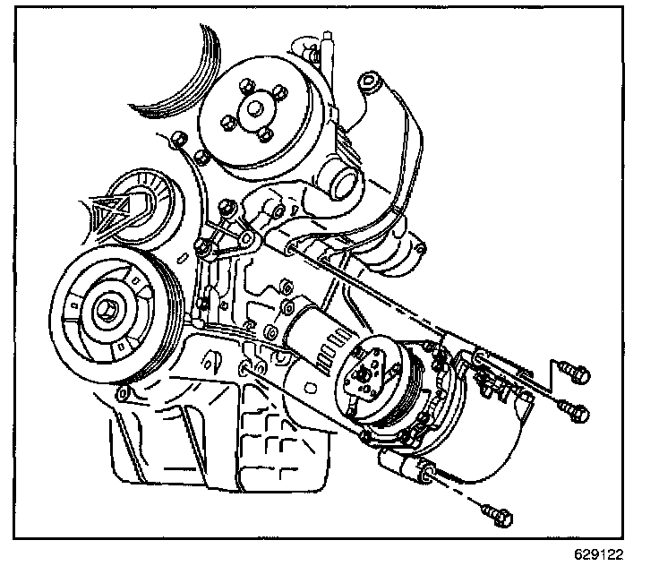 IMPORTANT: The A/C compressor is accessed through the right wheel opening.