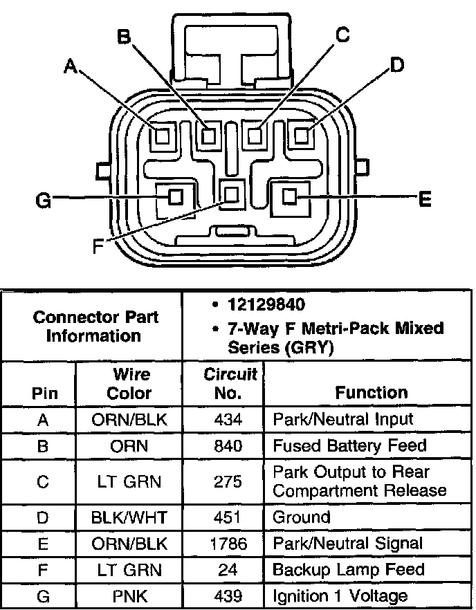 Transmission Range Switch C1 Connector, Wiring Harness Side