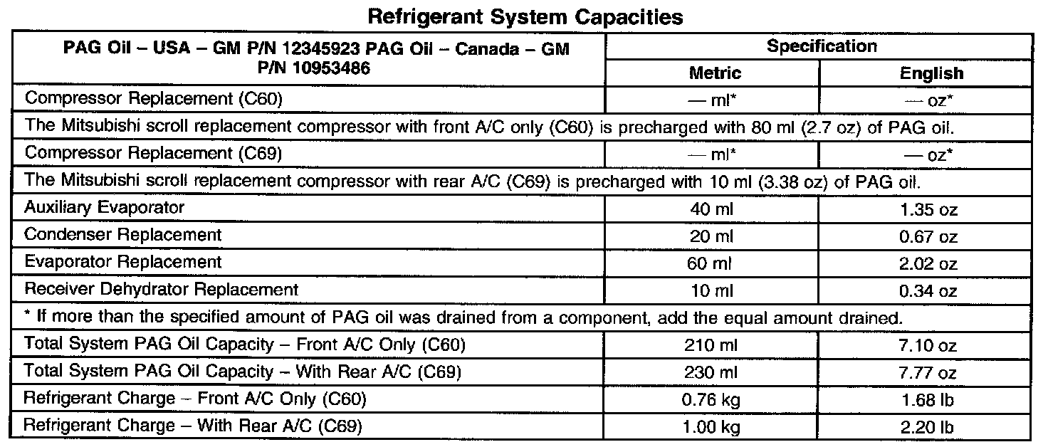 Refrigerant System Capacities: