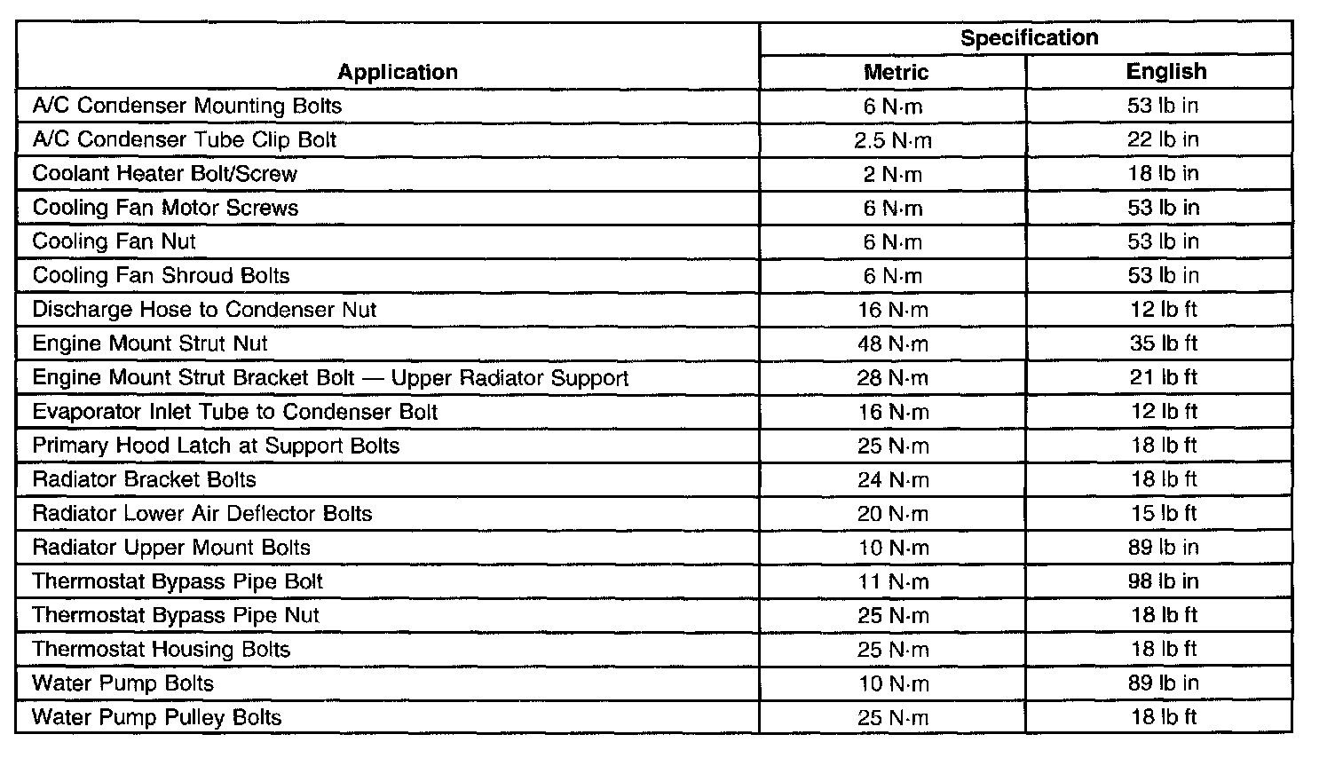 Fastener Tightening Specifications