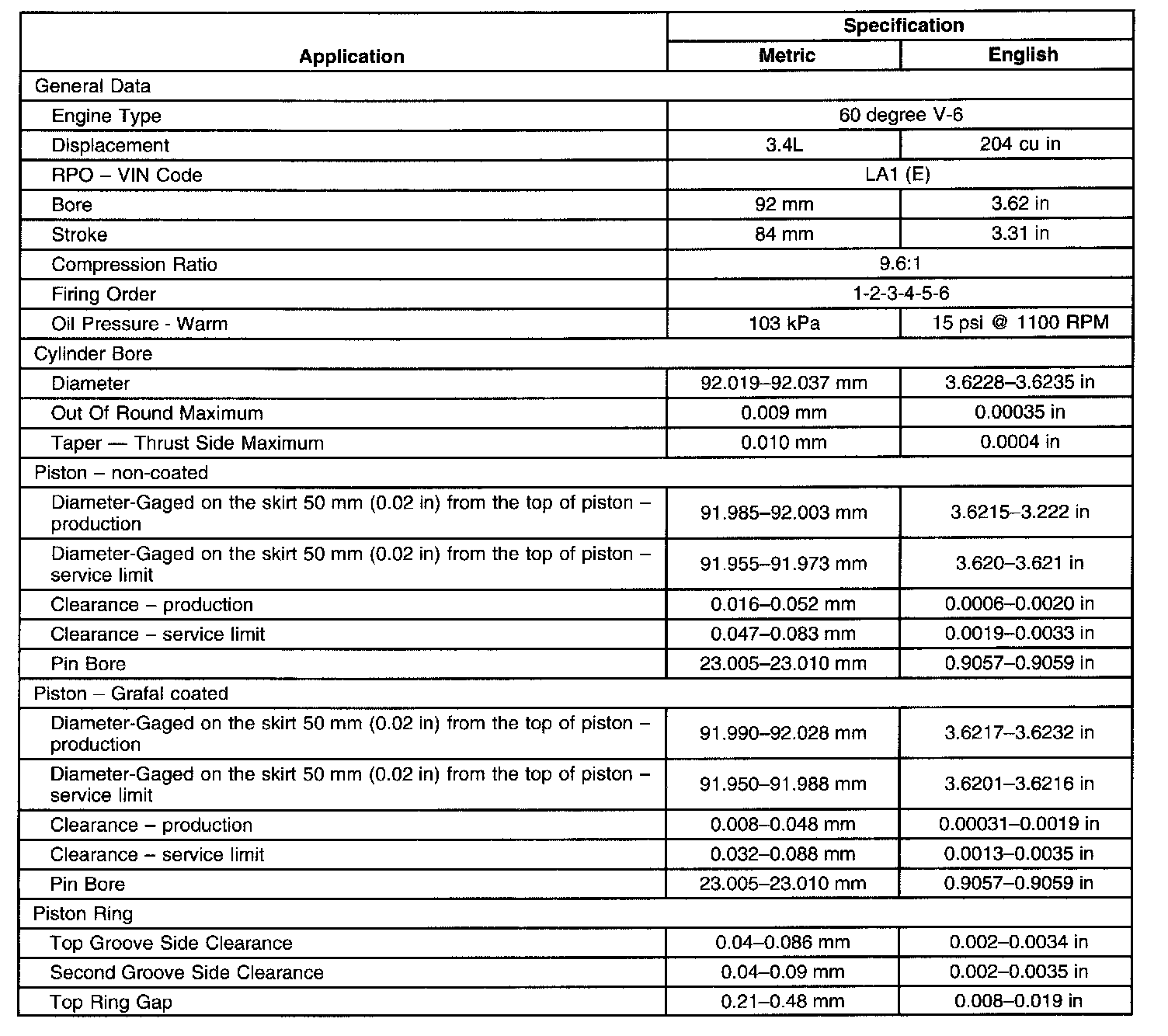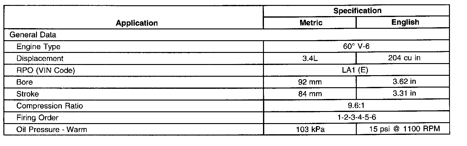 General Engine Data/Specifications