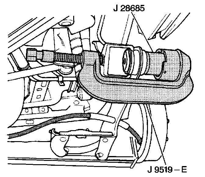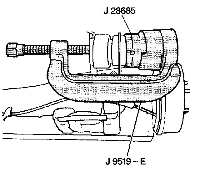 6. Use the J 28685 and the J 9519-E in order to remove the control arm bushing.