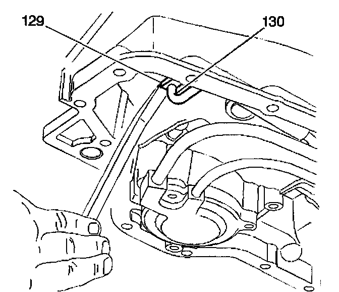 6. Use a large flat-bladed tool in order to gently pry the lube oil pipe retainer (129) from the case.