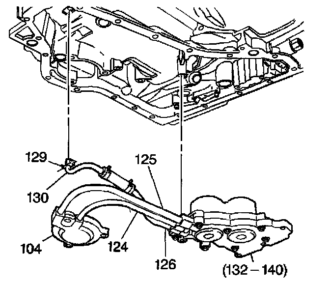 6. Install the lube oil pipe (130) into the case at the lube hole for the front differential carrier internal gear.