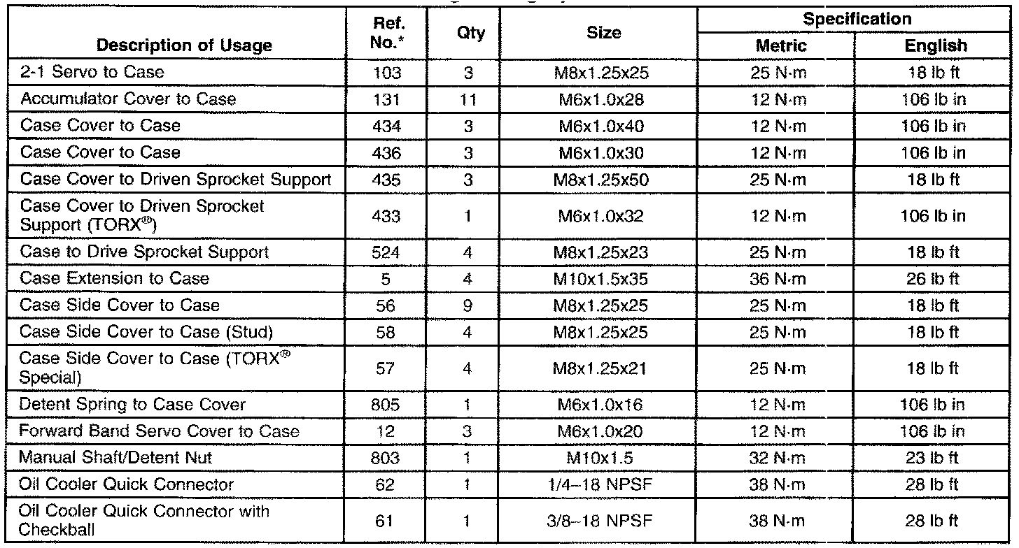 Fastener Tightening Specifications