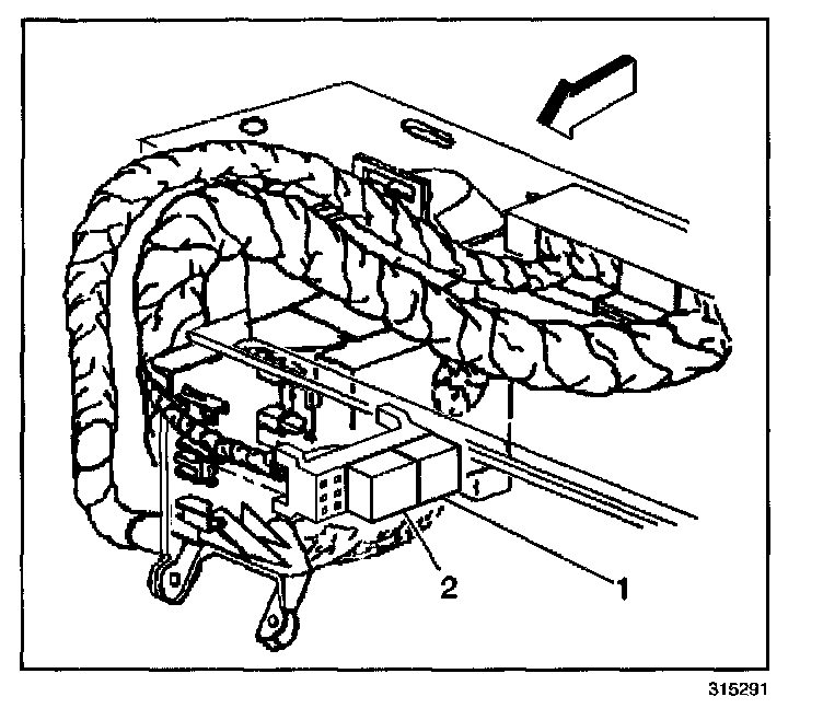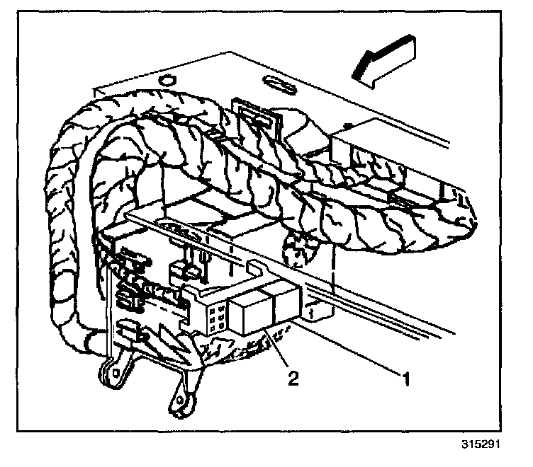 1. Install the rear window Defogger timer/relay (2) into the relay block (1).