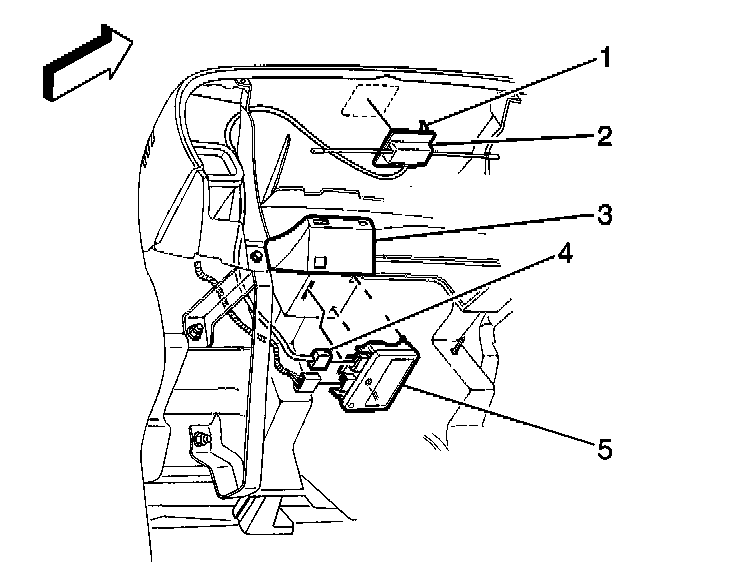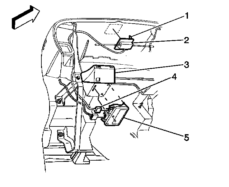 3. Disconnect the remote keyless entry electrical connector (4) from the receiver (5).