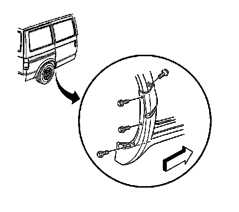 8. Remove the screws from the right rear inner and outer wheel well. Open the sliding door to expose the inner screw.