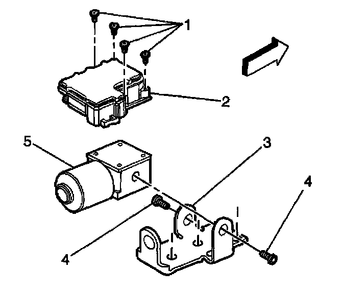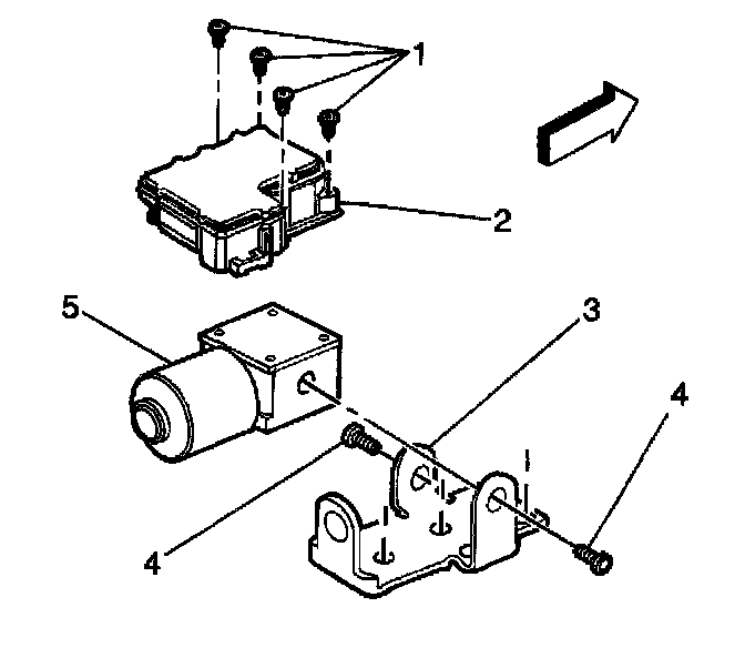 3. Remove the mounting screws (1) that fasten the EBCM (2) to the BPMV (5).