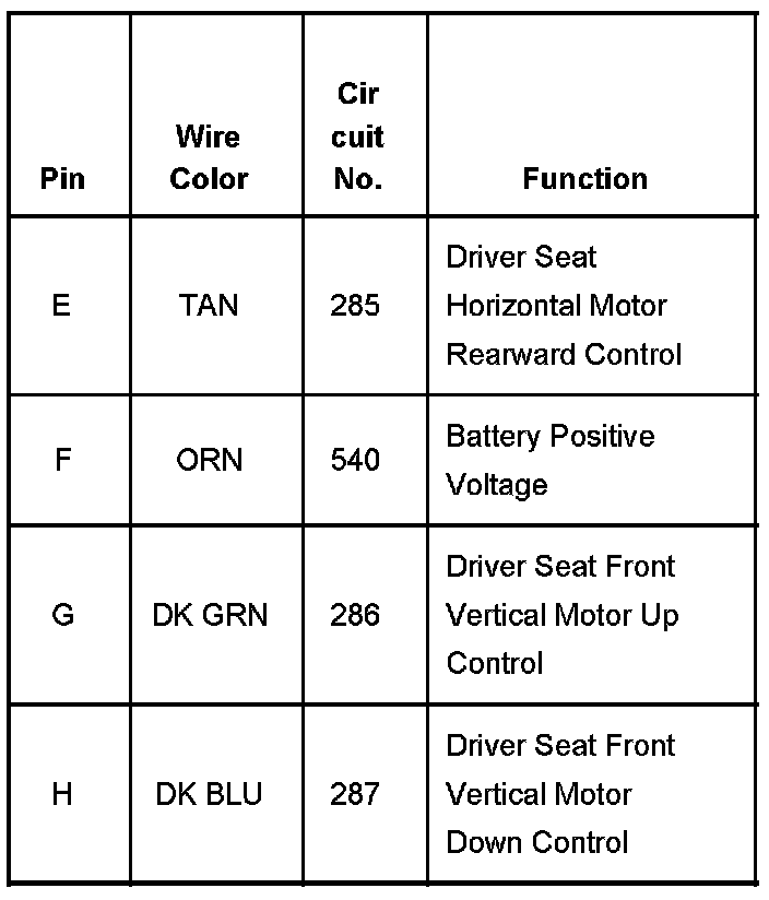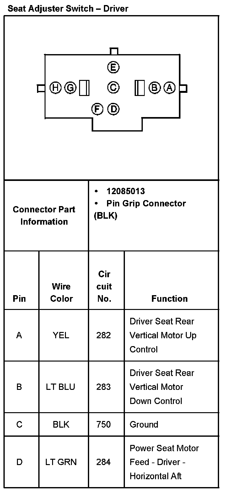 Seat Adjuster Switch - Driver Part 2: