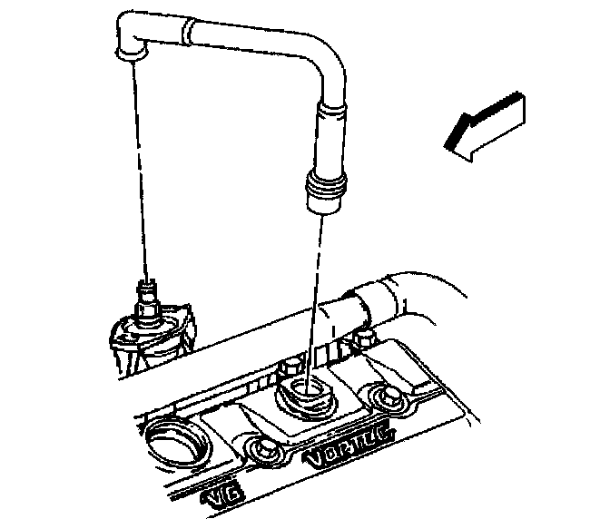5. Remove the PCV valve hose assembly from the intake manifold and the valve rocker arm cover.