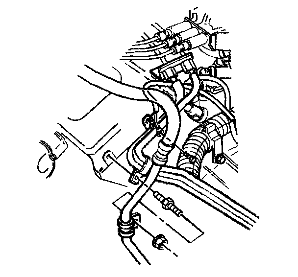6. Disconnect the air conditioning hose at the accumulator and the condenser, if equipped.