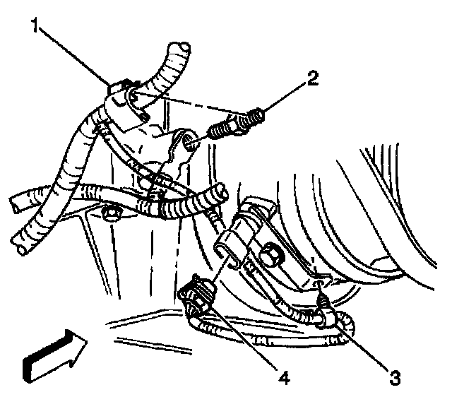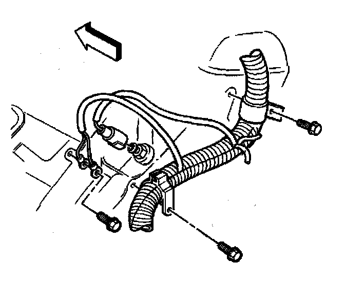 48. Pull the fuel pipes through the crossmember (forward). Lay the fuel pipes on the transmission.
