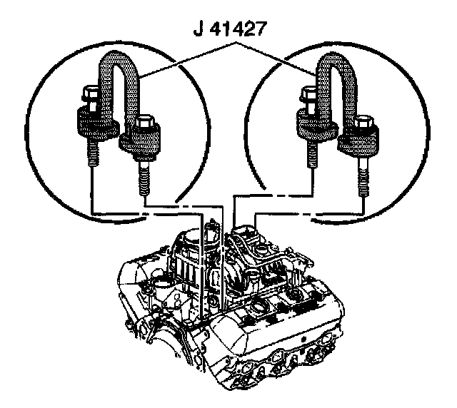 26. Install the J 41602 to the pinch weld area on both sides of the vehicle.