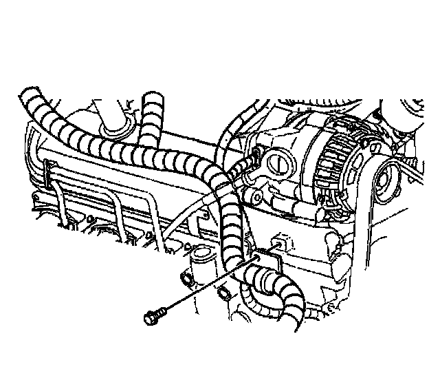 70. Remove the bolt holding the engine wiring harness clip to the rear of the right cylinder head.