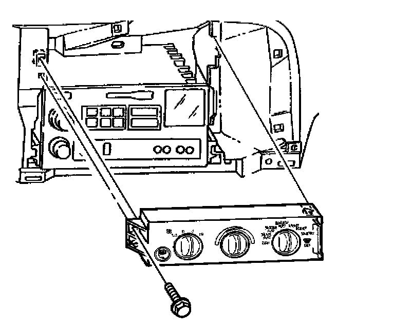 2. Remove the retaining screw from the left edge of the HVAC control assembly.