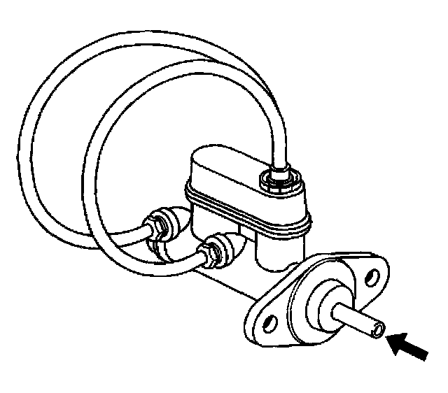 7. Using a smooth, round-ended tool, depress and release the primary piston as far as it will travel, a depth of about 25 mm (1 inch), several times. Observe the flow of fluid coming from the ports.