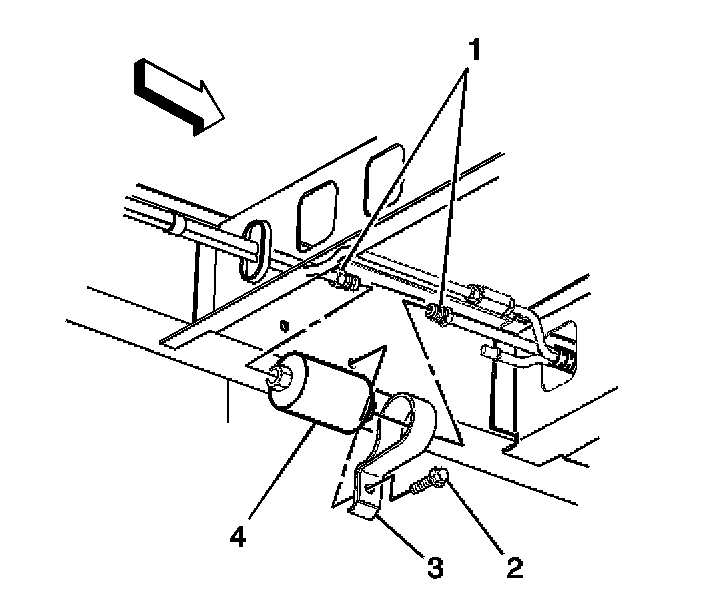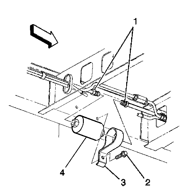 5. Remove the filter (4) and the clamp (3) from the fuel lines.