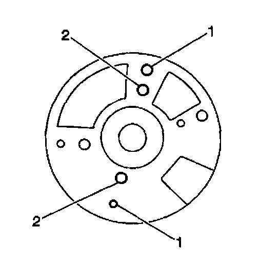 11. Align the rotor segment as shown for a V6 engine (1) or V8 engine (2).