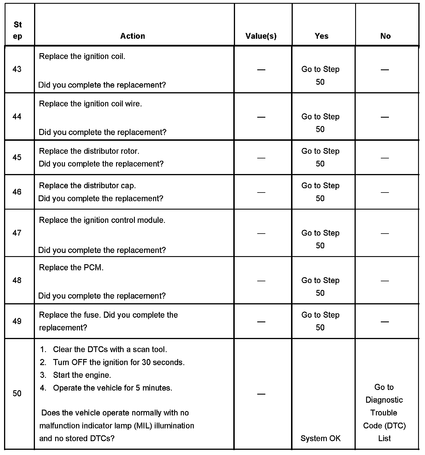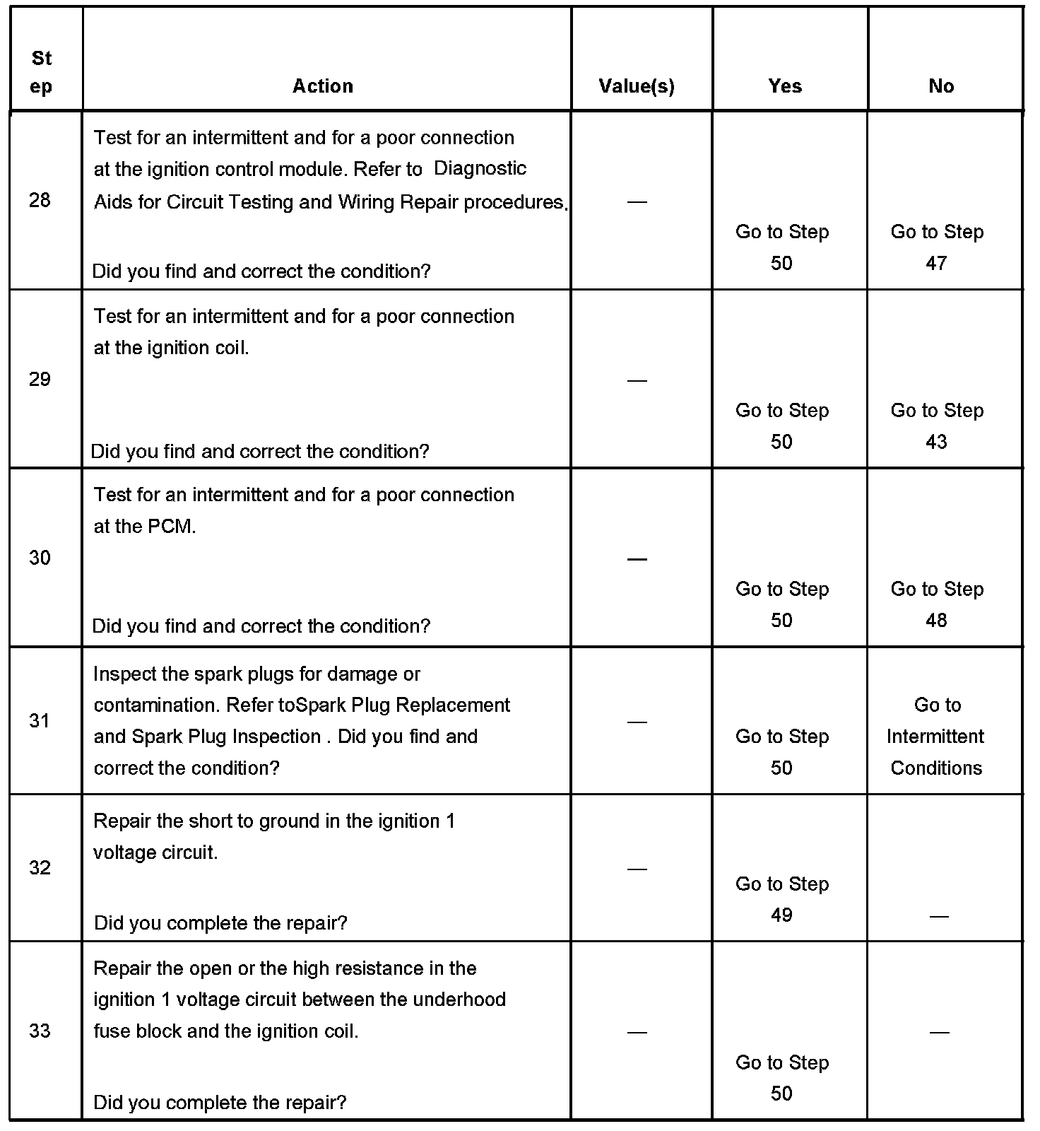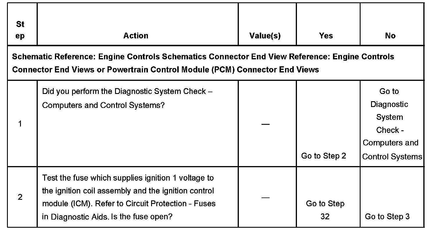 The Distributor Ignition (DI) System Diagnostic Table assumes the following conditions: