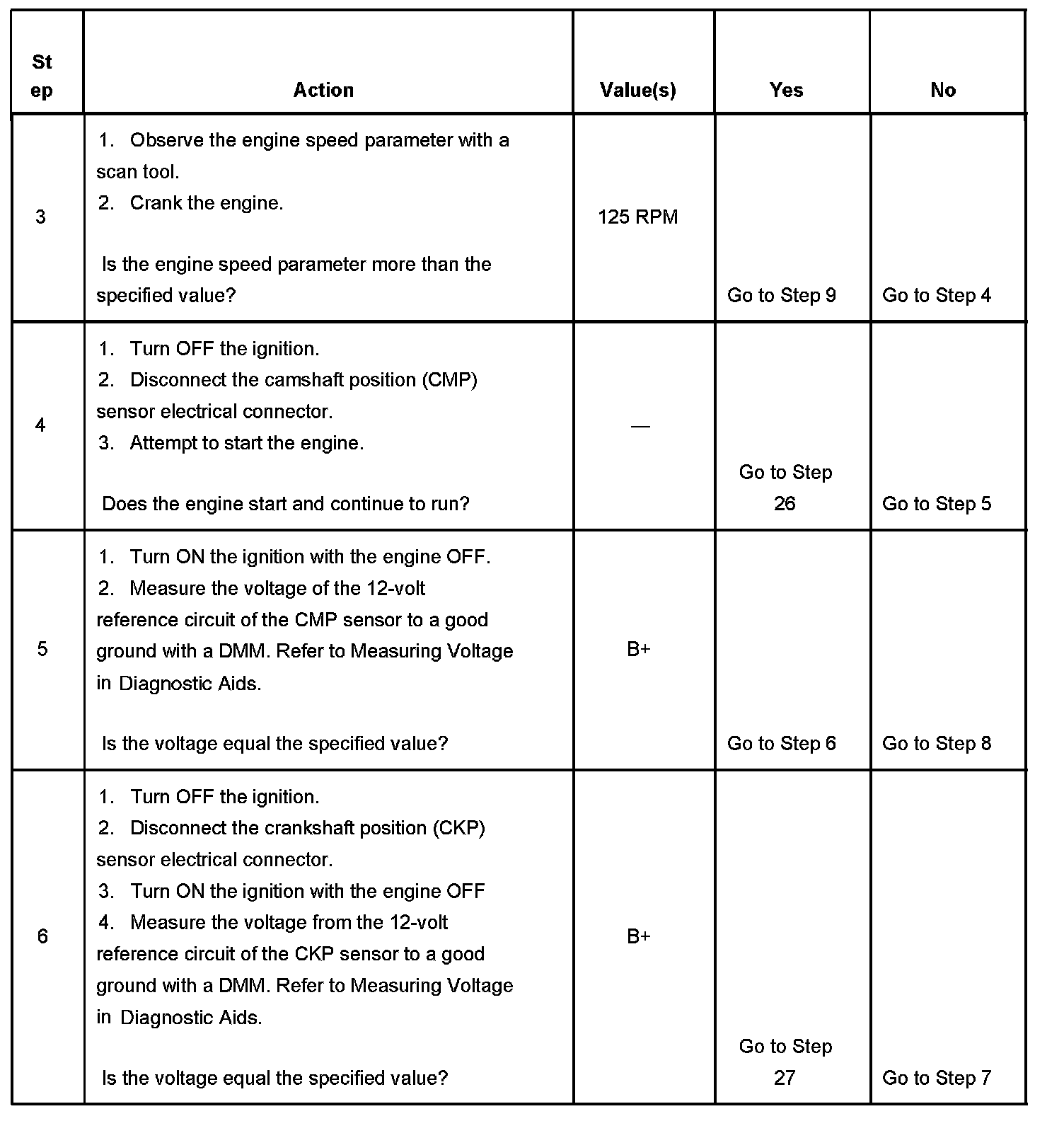 3. This step is testing for a crankshaft position sensor (CKP) signal to the PCM.