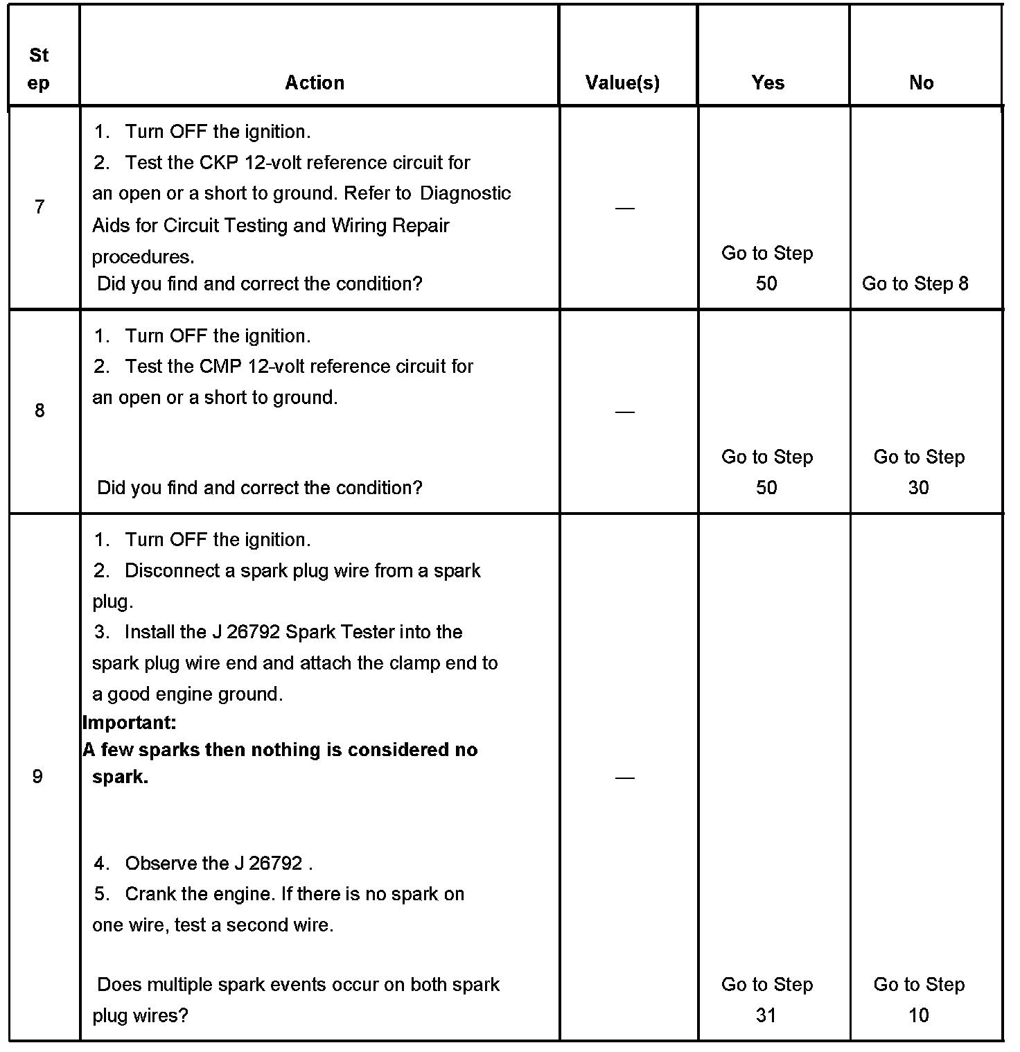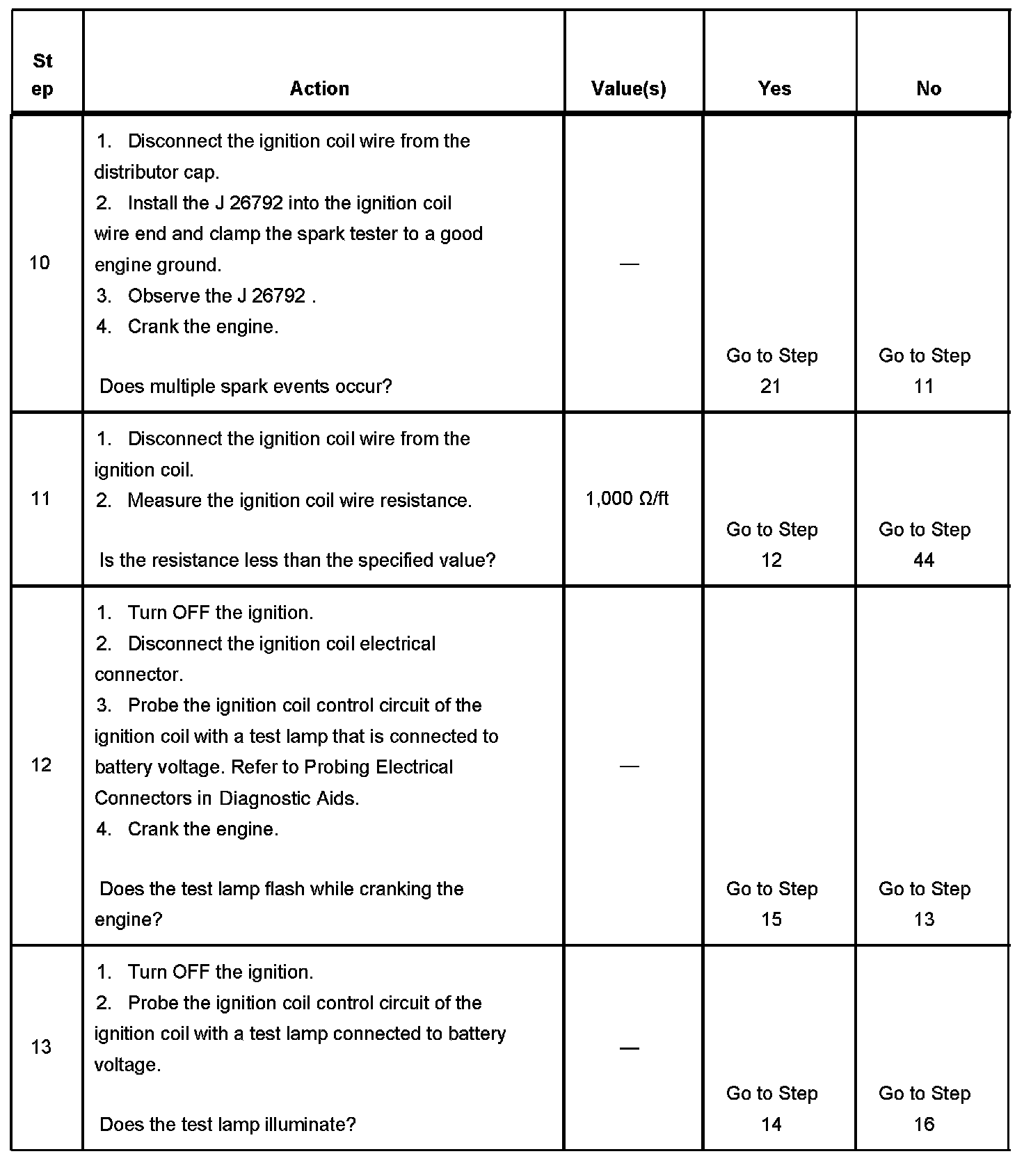 9. This step is testing for spark output at more than one spark plug wire. The J-26792 requires a minimum of 25,000 volts to operate.