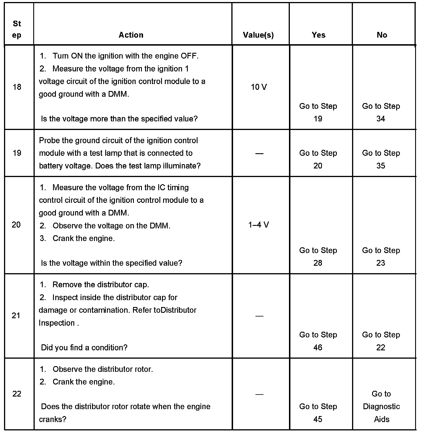 10. This step determines if spark is being delivered to the distributor cap.