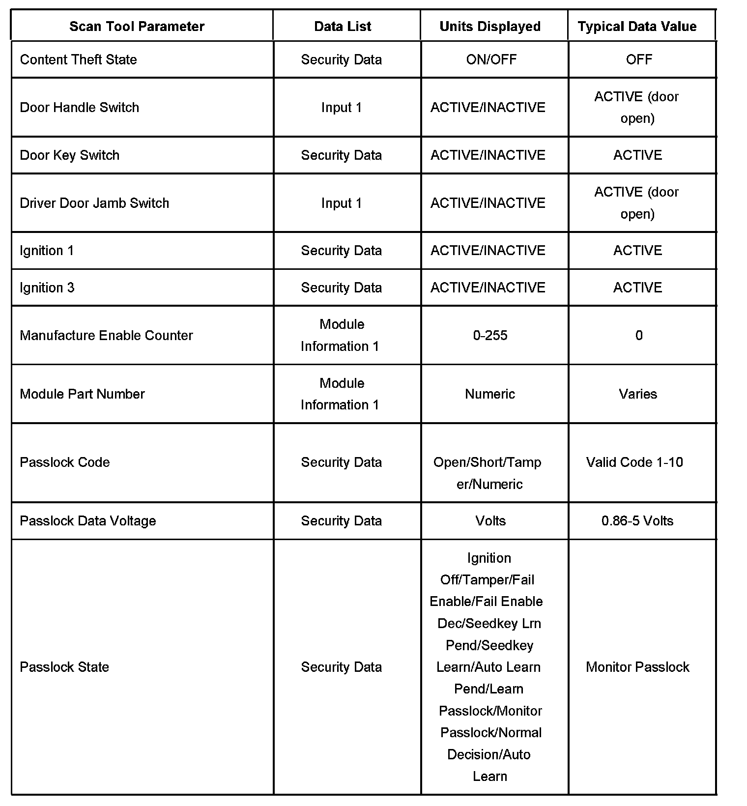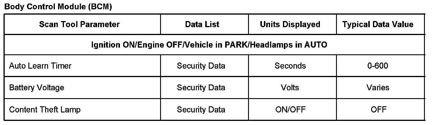Scan Tool Data List - Antitheft System