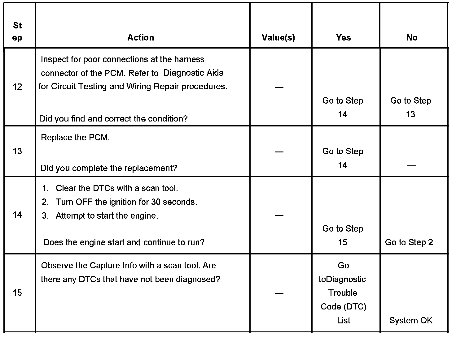 DESCRIPTIONThe Engine Cranks but Does Not Run diagnostic table is an organized approach to identifying a condition that prevents an engine from starting. The Engine Cranks but Does Not Run diagnostic table directs the service technician to the appropriate system diagnosis.