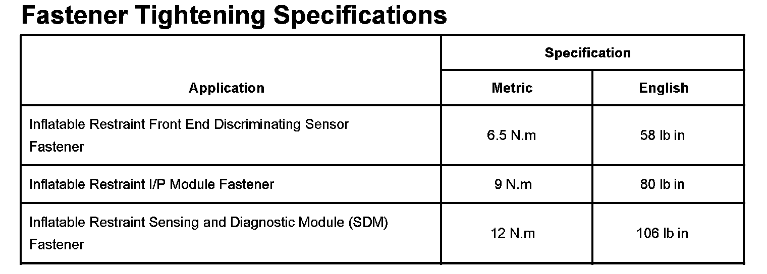Air Bag Systems: Specifications