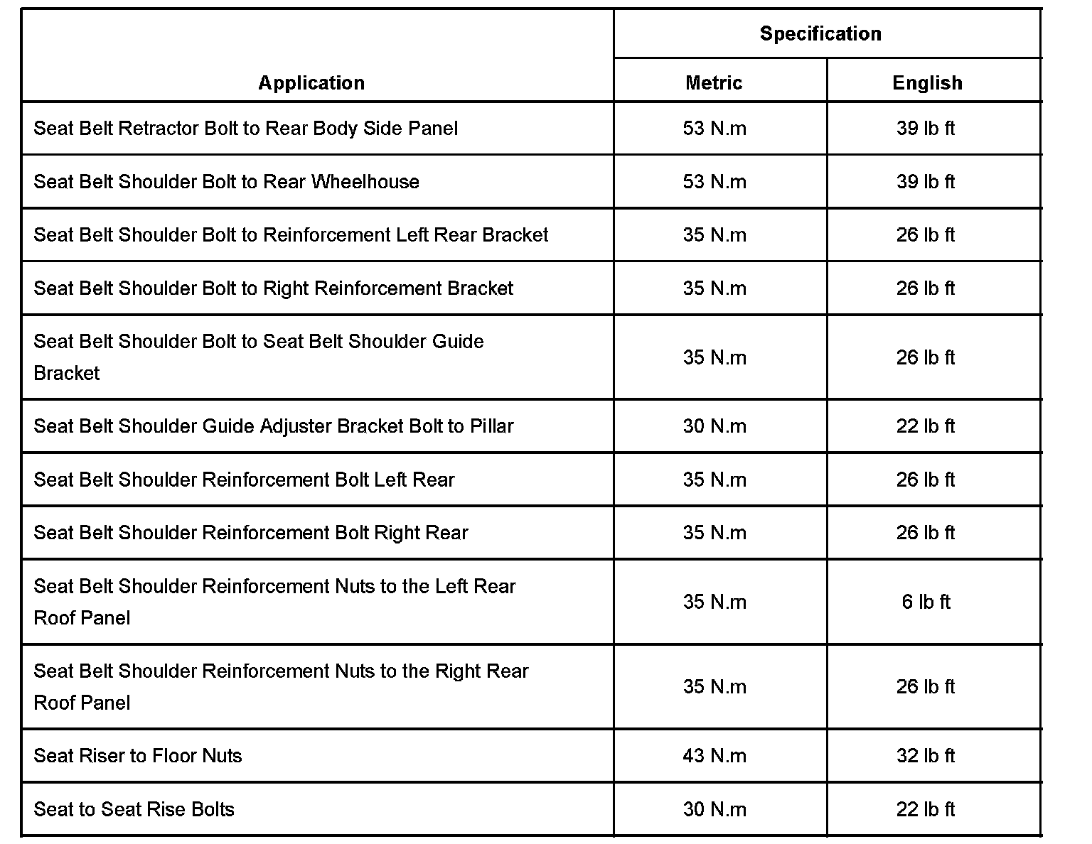 Seat Belt Systems: Specifications