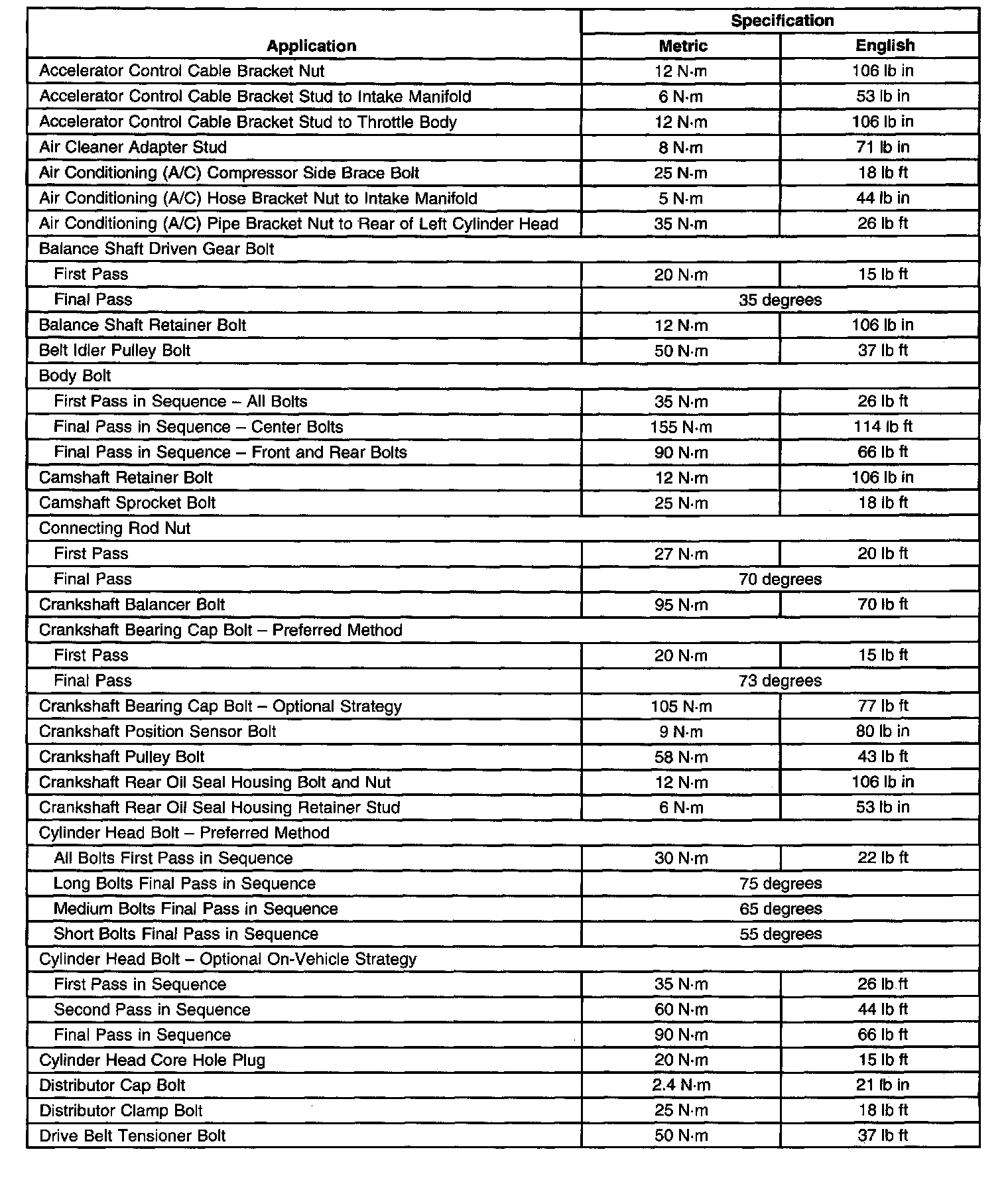 Torque Specification