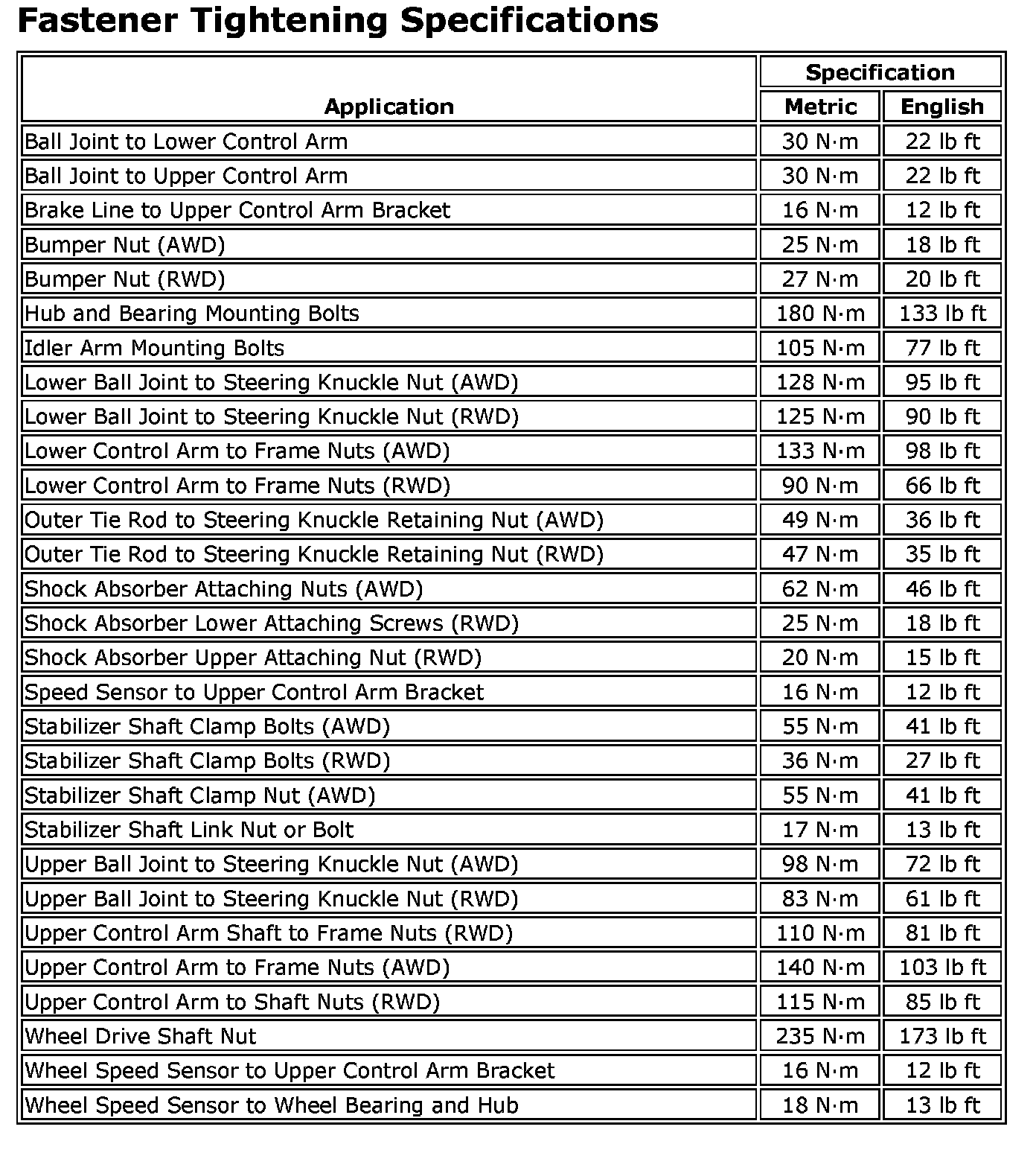Fastener Tightening Specifications