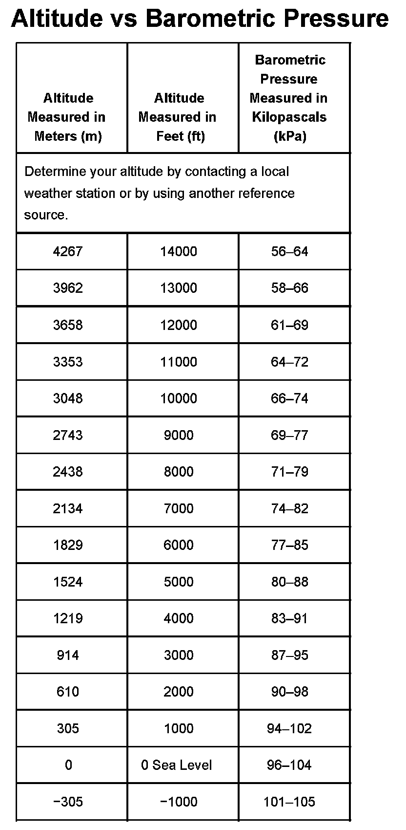 Altitude Vs Barometric Pressure: