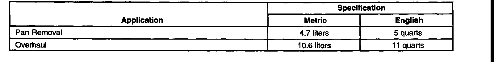 Fluid Capacity Specifications