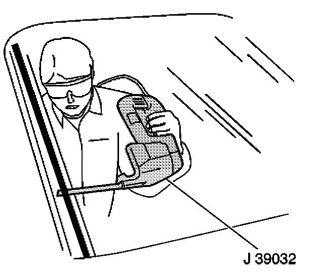 - Use J 24402-A , J 39032 or equivalent in order to remove the stationary window.