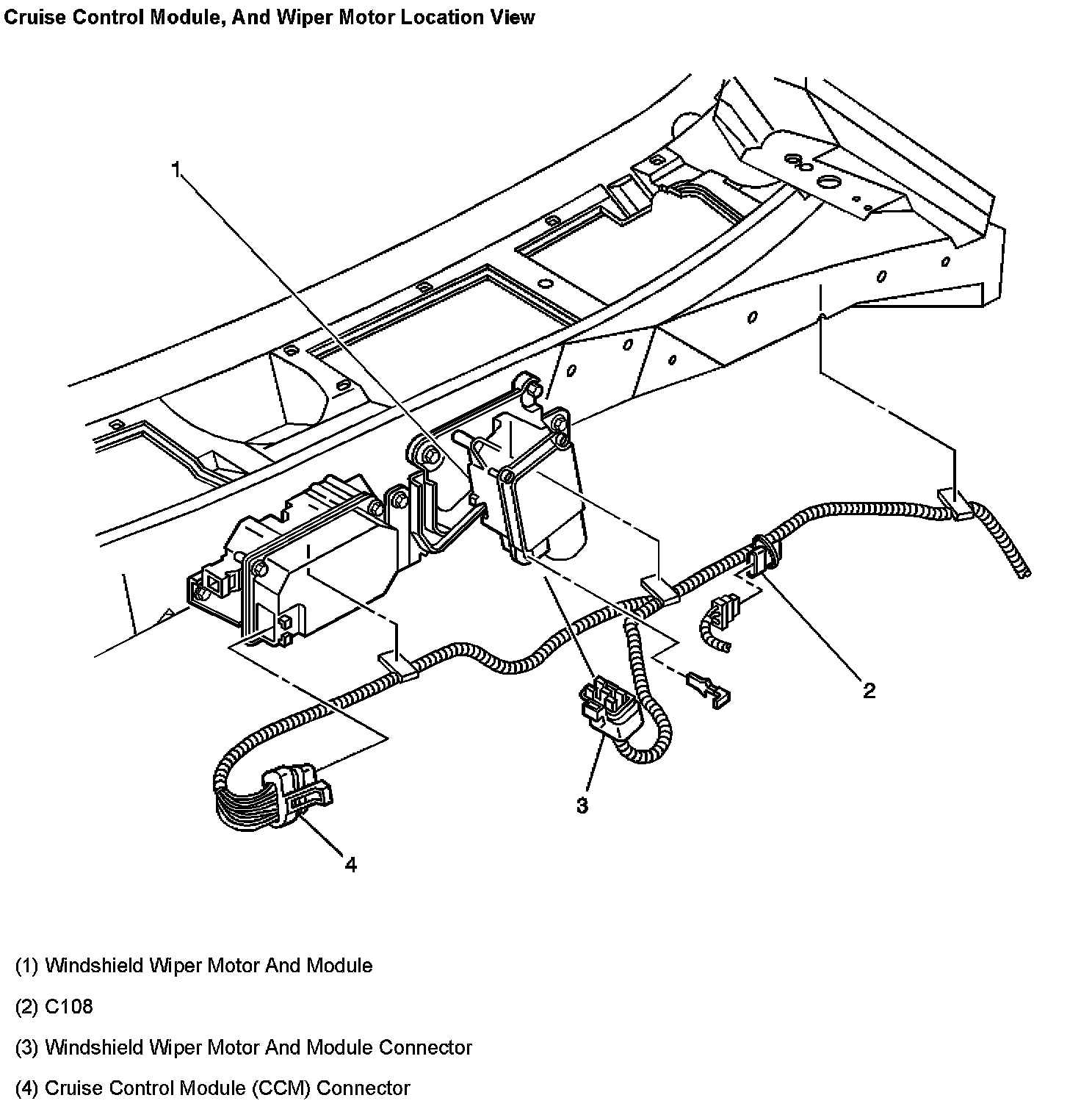 Cruise Control Module, and Wiper Motor Location View